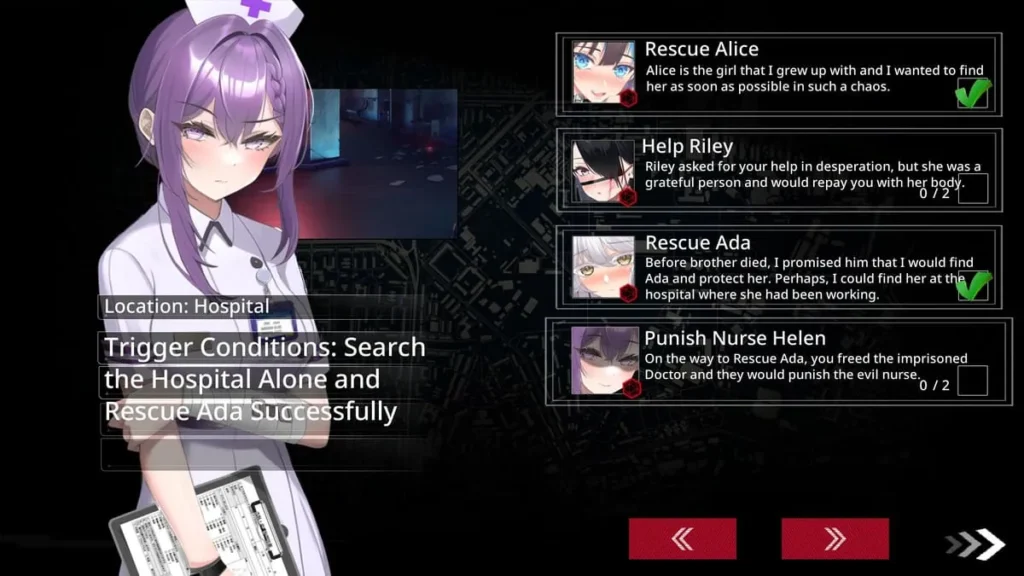 | Alice Solo Route | Prioritizing Alice’s emotional and physical well-being, often at the expense of Ada’s connection or sanity. Deepens the childhood friend bond. | Leads to endings centered on Alice’s fate. Can result in a protective, paired survival or a tragic outcome if her innocence is completely shattered. Contains 3 unique Alice-centric defeat scenes. |