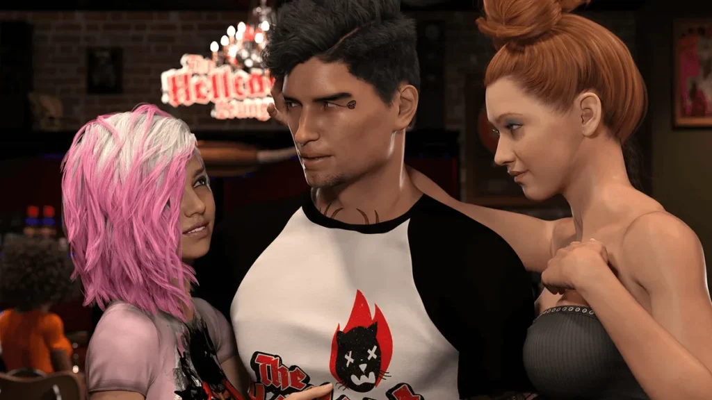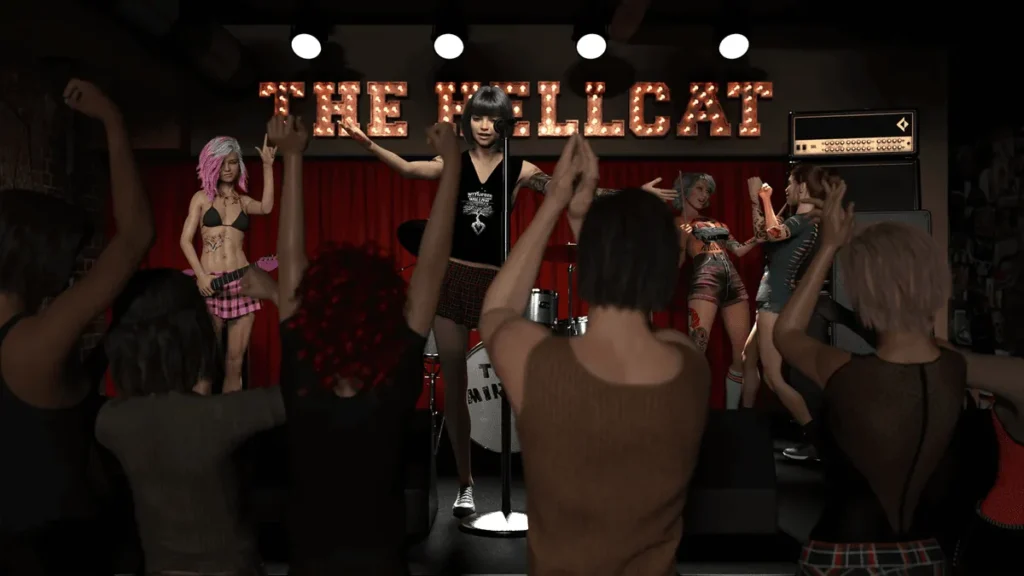 Ever stumbled into a rock club where every tattooed rocker girl steals your breath and your choices lead straight to mind-blowing encounters? That’s The Hellcat Lounge, the sizzling 3D visual novel that’s got me hooked since I first fired it up last summer. Follow Noah, an everyday guy whose life flips when he dives into the hedonistic world of bars, bands, and The Hellcat Lounge erotic adventures. With stunning animations, quick-paced steamy scenes, and a killer LA rock vibe, this game delivers pure escapism. In this guide, I’ll share my personal playthrough insights, tips to unlock the hottest paths, and why it’s a must-play for visual novel fans craving story-driven thrills.